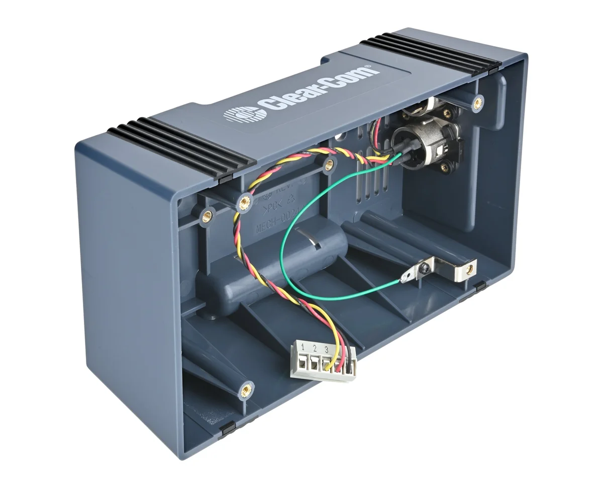 The Clear-Com U-Box is a versatile and rugged enclosure designed to convert any Clear-Com KB 4-gang sized speaker station into a desktop, shelf, or wall-mounted unit for portable or permanent installations.